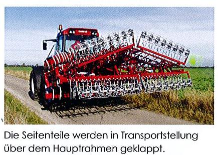 Das Klappen der Seitenteile erfolgt durch zwei doppelwirkende Hydraulikzylinder. Die Seitenteile sind frei beweglich, werden durch eigene Stützräder tiefengeführt und passen sich dadurch Bodenunebenheiten an. Beim SGC 37 bis 41 sind die 0,60 m breiten Seitenteile in Arbeitsstellung mit dem Mittelrahmen verriegelt. Die Anbaukonsolen für Schleppplanke und Krümler sind bereit am Grundgerät vorhanden, eine nachträgliche Montage von Zusatzausrüstungen ist problemlos jederzeit möglich.