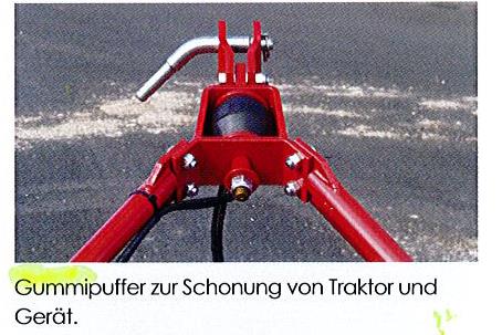An der Verbindung zwischen Dreipunktbock und Rahme ist ein Gummipuffer eingebaut. Dadurch kann sich das Gerät exakt an den Boden anpassen und schützt die Dreipunktaufhängung und den Rahmen des Gerätes.