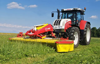 Mähwerk näher zum Schlepper verlagert. Das Getriebe
