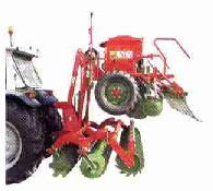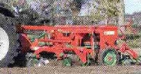 | Das untere Bild zeigt die Transportstellung der Drillgeräte. Die hydraulische Kupplung hebt die Aussaatmaschine über das Aggregat. Dadurch befindet sich der Schwerpunkt näher am Schlepper. |