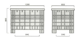 Außenmaße: L 1200, B 800, H 800 mm