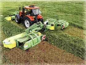 - Beide Walzen sind angetrieben. Die Aufhängung der oberen Aufbereiterwalze ermöglicht das Mähen von besonders hohen Gras