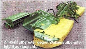 GigaCut - Mähkombination wird mit Zinkenaufbereiter oder Walzenaufbereiter ausgerüstet. |
