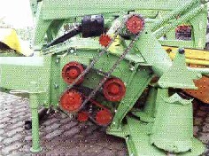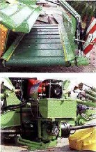 Die Querförderbänder der GigaCut - mähkombinationen sind durch ein eigenes Hydrauliksystem angetrieben. Das System besteht aus Hydraulikpumpe, Ölkühler und zwei Hydraulikmotoren. Ein- / Ausschaltung der Querförderbänder erfolgt (unabhänging) durchs Steuerpult im Fahrerhaus. |