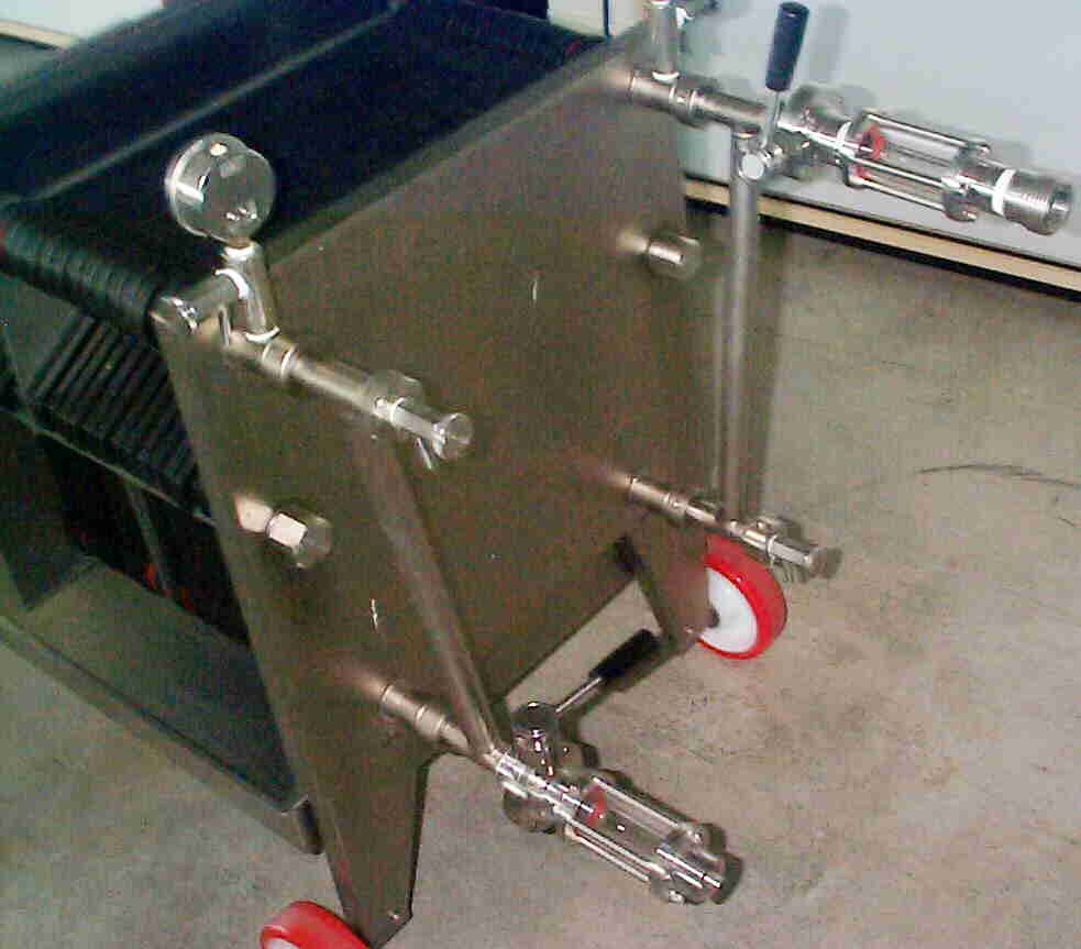 mit Entlüftungshähnen und Probeentnahme des filtrierten